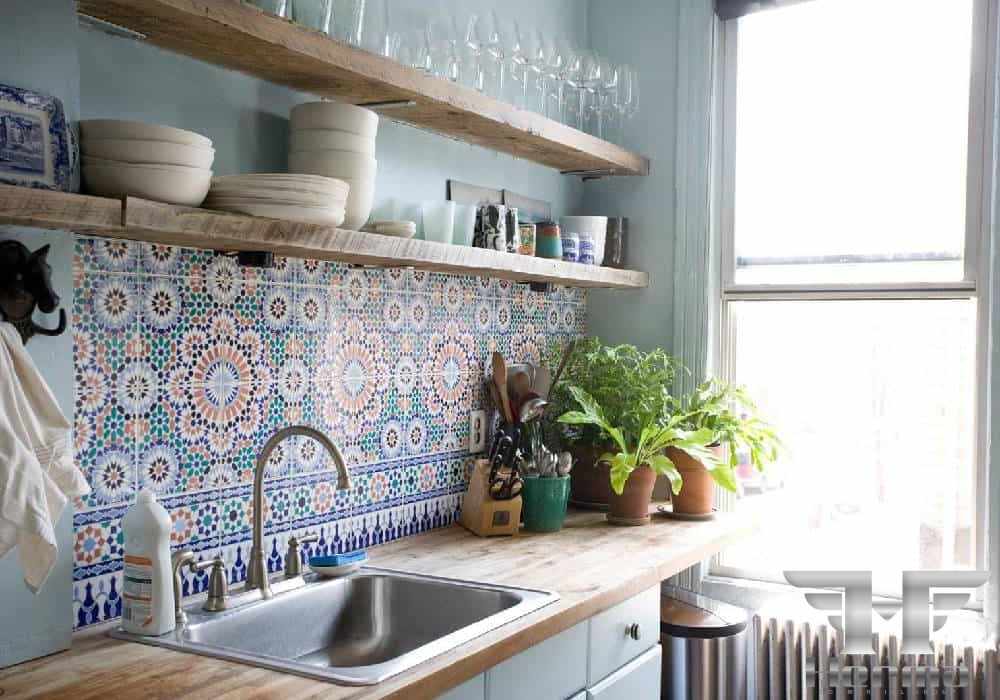 برای دیوار, به خصوص در پشت اجاق گاز, جایی که احتمال بیشتری برای پاشش روغن وجود دارد, کاشی های رنگ شده می توانند گزینه خوبی باشند. به طور کلی برای پوشاندن دیوار کاشی با طرح های زیبا زیبایی و تنوع اشپزخانه را افزایش می دهند.